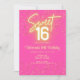 Invitación Sweet 16 Hot Pink Neon Glow Gold Glitter Birthday