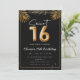 Sweet 16 Sixteenth Birthday Balloon with golden tropical leaves Party Invitation