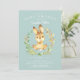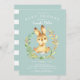 Adorable invitación a un conejito de bebés con un conejo de bebés dulce rodeado por una corona de flores sobre un fondo verde para una ducha neutral de género. Invitamos a nuestros huéspedes a ver la parte de atrás de la coordinación para un toque especial.