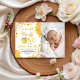 Share your baby's smile with this "Sweet to Bee One" photo invitation. The design includes a personalized photo slot framed by a happy watercolor bee, dripping honeycombs, and bright yellow blossoms. The cheerful honey-themed palette makes it a wonderful choice for a girl or boy's first birthday. A perfect way to create a custom keepsake while inviting loved ones to your little honey's special day.