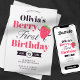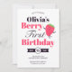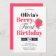 ¡Celebra tu primer cumpleaños con esta adorable invitación con tema de fresa! Con una linda fresa con una gran sonrisa, esta invitación es perfecta para un fiesta dulce de berry. Personaliza la invitación con tus propios detalles y hazla aún más especial.