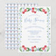 Únete a nosotros para una dulce cereza roja de ducha de bebé con marco azul y verde simple y fuente de coordinación azul. Qué lindo para esa niña o ducha de niño. 100% de satisfacción del cliente con "Zazzle"