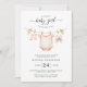 Celebrate the upcoming arrival of a sweet baby girl with this charming clothesline baby shower invitation. Featuring soft watercolor baby clothes and a plush toy hanging from a rope with eucalyptus leaves, this design sets a gentle, feminine tone. Perfect for a baby girl shower, it combines soft blush tones and minimal style for a warm, welcoming feel. Matching items available.
