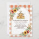 • A charming watercolor design featuring three adorable baby goats stacked on hay bales, framed by sunny sunflowers, daisies, and wheat stalks. The design is bordered by a rustic orange gingham pattern, perfect for a fall, farm, or country-themed baby shower.