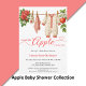 Celebrate your little one with this charming “A Sweet Little Apple is on the Way” baby shower design. Featuring a cozy watercolor baby outfit, apples, and soft floral details on a clothesline, it’s perfect for a fall or harvest baby shower. A lovely choice for rustic farmhouse celebrations or orchard-themed gatherings.