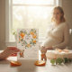 Celebrate the upcoming arrival of your little one with this enchanting baby shower invitation! Featuring a whimsical watercolor design, it showcases a charming teddy bear holding a juicy orange, surrounded by a vibrant heart-shaped wreath of oranges, daisies, and lush greenery. The gentle color palette and playful illustrations create a warm and inviting atmosphere for your special event. This invitation is perfect for announcing a 'Sweet Little Baby is on the Way!' and will set a delightful tone for your baby shower guests. The back of the invitation features a repeating pattern of daisies with orange bows, adding an extra touch of charm.