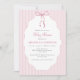 Invitación Sweet Pinstriped Pink Bow Baby Shower