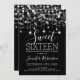 Elegante planilla de invitación de cadenas de color elegante Silver & Black Sweet 16 Birthday Party Sparkly String Lights.