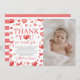 A sweetheart-themed first birthday photo thank you card featuring red watercolor hearts, bows, and elegant modern typography paired with a customizable baby photo. Designed to express appreciation for celebrating the special day and for thoughtful gifts. Ideal for heart-themed, girly, or sweet first birthday parties.