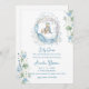 Gather your loved ones to celebrate a "sweet little goose on the loose" with this enchanting Silly Goose Baby Shower Invitation. This design features a precious watercolor gosling dressed in a soft blue pajama set and matching nightcap, quietly reading a book with a tiny bunny friend. The scene is nestled within a delicate floral wreath of dusty blue blooms and golden wildflowers, elegantly draped with a flowing cream ribbon and a voluminous blue polka-dot bow.