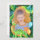 Este diseño de invitación de cumpleaños con fotos de niños con estrellas de hueso de los dinosaurios T-Rex presenta una T-rex ilustrada a mano con globos fiestas, confeti, banderas de amarre y vegetación. En la parte de atrás hay un marco de foto de dino con un brontosauro y un pterodáctilo y más vegetación con espacio para añadir tu propia foto. Este diseño es adecuado para niños de cualquier edad o género. Puede personalizar de todos los detalles para que se adapten a su evento. Vea toda la colección coincidente.
