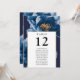 Estos elegantes números de mesa de boda floral azul marino y dorado se pueden personalizar con los nombres de sus huéspedes en tipografía moderna. Diseñado por Thisisnotme©