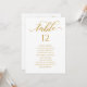 Invitación Tabla de asientos número de tabla de guiones dorad