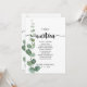 Esta tabla de eucalipto verde número 19 es perfecta para un boda sencillo. El diseño presenta una acuarela de hojas y ramas de eucaliptos botánicos elegantes dibujadas a mano. La tarjeta imprime recto verso (doble cara)