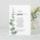 Esta tabla de eucalipto verde número 7 es perfecta para un boda sencillo. El diseño presenta una acuarela de hojas y ramas de eucaliptos botánicos elegantes dibujadas a mano. La tarjeta imprime recto verso (doble cara)