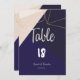 Tarjeta de tabla Boda geométrica azul marino rosa y oro