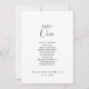 Este sencillo cuadro minimalista número 1 es perfecto para un boda sencillo. El diseño presenta un hermoso tipo de letra de caligrafía negra en un fondo blanco para embellecer tu evento. La tarjeta imprime recto verso (doble cara)