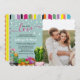 Brillante y colorido Taco 'Bout Love Fiesta, las parejas de ducha invitación con una fotografía de la pareja feliz, elegante guión de caligrafía, plantas de cactus acuarelas, flores, luces de hadas y una plantilla moderna de fiesta que es fácil de personalizar con tus propios detalles.