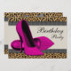 Invitación Tacones Altos Cumpleaños Fiesta Rosa Fucsia Leopar
