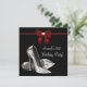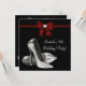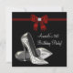 Invitación de cumpleaños de mujer con tacones altos rojos y negros elegante para cualquier edad.