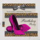 Zapatos de tacón alto de color rosa intenso y tarjeta de invitación de cumpleaños con estampado de leopardo rosa. Esta invitación de fiesta de leopardo rosa funciona bien para una despedida de soltera, una fiesta de boda, cumpleaños de mujer de 21, 25, 30, 35, 40, 45, 50, 55, 60, 65 años y cualquier otro cumpleaños. Esta elegante invitación de cumpleaños con estampado de leopardo rosa también serviría como invitación para una fiesta de cumpleaños de Sweet Sixteen o Quinceañera y se personaliza fácilmente para su evento simplemente eligiendo el botón "Personalizar" para comenzar a agregar los detalles del evento, estilo de fuente, tamaño y color de la fuente y redacción. Tenga en cuenta que todas las tarjetas y diseños de invitaciones que encontrará en Zazzle son gráficos impresos sin joyas reales