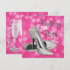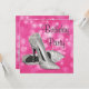 Copas de champán rosadas y elegantes y zapatos de tacón altos con brillo para invitación de fiesta de cumpleaños con cualquier número. Puede quitar las copas de champán de la parte posterior. Agregue sus detalles en la parte delantera y trasera de esta invitación de cumpleaños de champán rosa. Tenga en cuenta que todos los diseños de invitaciones que encontrará en Zazzle son gráficos impresos sin joyas reales, lazos, partes o piezas añadidas, realzadas o grabadas.