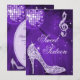Personalizado y elegante personalizado Sweet 16 invitaciones a la celebración de la fiesta de cumpleaños para chicas, con brillo y glamour. Hermosa morada, lila / lavanda y doble cara blanca Dulce Dieciséis invitaciones para chicas adolescentes con una divertida bola de espejo retrovisor de disco retro, glamorosos diamantes de imitación de imágenes impresas, purpurina, lentejuelas, joyas brillantes zapatos de tacones altos, y notas musicales purpurinoso / notas musicales con destellos en una vibrante luz violeta y fondo espumoso. Moda, señorial, adorable, jovencito, invitaciones modernas en colores de moda. Estas acogedoras, elegantes, sofisticadas, bonitos y guijarros invitan a la decoración o impresión en ambos lados. Invitaciones perfectas para una cena de baile. Perlas y alfombras de encaje, por ©Hazel Kinvig-Paul www.design-a-dream.co.uk. NOTA: Todas las invitaciones en Zazzle tienen imágenes impresas planas. Si necesitas ayuda para personalizar tu producto, ponte en contacto conmigo a través de mi tienda y estaré encantado de ayudarte.