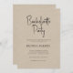 Invitación Tan Linen Simple Black Script Bachelorette Party
