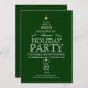 Un texto elegante se arregla en forma de árbol de Navidad en esta invitación de fiesta de vacaciones verde esmeralda. Perfecto para una sofisticada fiesta corporativa o un fiesta de Navidades de moda en casa. El texto sigue la forma del árbol con acentos ornamentales y una estrella dorada sobre el árbol. Agregue texto adicional al reverso o suprímalo para dejar el texto en blanco. Disponible en colores alternativos.