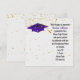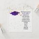 Mortarboard morado en confeti dorado sobre fondo blanco suave texturizado para una fiesta de graduación invitada. Todo el texto/nombre es editable.