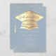 Invitación Tapón de graduación de oro,Graduación azul turbule