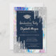 Invitación Tapón de graduación purpurina, gotas plateadas, op