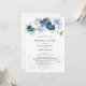 Personalice esta tarjeta de invitación de boda para la cena de ensayo haciendo clic en el botón "Personalizar" arriba. La tarjeta presenta un elegante y moderno diseño chic de flores azules polvorientas con flores blancas, azul claro y verde oliva.
