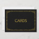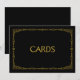 Estilo art déco simple y elegante de señal de boda "Tarjetas", personalizado con su propio texto, cuenta con un marco art déco dorado sobre un fondo negro.