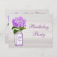 Invitaciones rústicas púrpuras y grises elegantes de la fiesta de cumpleaños del país para las mujeres y adolescentes con un tarro de albañil púrpura y blanco lindo de la bola de cristal y un ilustracion púrpura bonito de la flor del vintage del hydrangea en un fondo de madera gris elegante lamentable elegante del efecto. Moderno con clase, de moda, de moda, femenino invita a perfecto para la primavera, el verano, la caída/el otoño y los acontecimientos del invierno. Todo el texto se puede modificar para requisitos particulares fácilmente para cubrir sus necesidades y usted puede cambiar el estilo, el color y el tamaño de fuente de la fuente si usted desea. Si usted necesita alguna ayuda que modifica su producto para requisitos particulares me entra en contacto con por favor a través de mi tienda y me placeré ayudar. OBSERVE POR FAVOR: Todo invita en Zazzle tiene imágenes impresas del plano.
