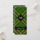 Diseño escocés verde, negro, rojo y blanco. Patrón sin foco. texto personalizado y monograma.