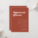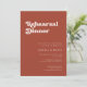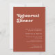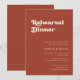 La noche anterior... Asegúrate de que todo sea perfecto para el gran día; recibe invitaciones modernas para tu cena de boda. Un tema de moda retro: adopta este diseño tipográfico algo vintage y elegante para tu papelería boda, con un tema de naranja quemado, terracota y color azúcares marrones. Personalizable completo de texto, colores y fondos.