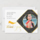 Elegante, y moderna graduación de Relieve metalizado de oro Gracias tarjeta de felicitación. Personaliza fácilmente el diseño añadiendo la foto del graduado, el nombre y el año de graduación, para crear una tarjeta de felicitación única "Gracias" para tu graduación. Utilice el esquema de color de la escuela para cambiar los colores de topper de la tapa. Agrega tu mensaje y di gracias con esta elegante tarjeta "Gracias". Para productos de coincidencia o personalización, por favor envíe un mensaje a través de Zazzle. Gracias!