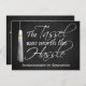 Invitación a la invitación de graduación universitaria, con una redacción clásica formal y un tema divertido. La molestia valía la pena. Divertido e ingenioso dicho acerca de todo el trabajo duro, sudor, determinación, sacrificio y dedicación que se llevó a convertirse en un exitoso logro educativo. Fondo de estilo negro oscuro de lienzo con un tono blanco y dorado y letras cursivas. Mantenimiento personalizado para el graduado. Todos los diseños Copyright © www.CustomInvitesOnline.com