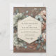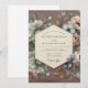 A romantic floral design features soft taupe and muted blue blooms with hints of blush. Delicate greenery intertwines with the blossoms, creating an elegant and ethereal atmosphere. This artwork evokes a sense of timeless romance for a special occasion.