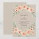 This design features a serene palette of soft peach and apricot watercolor roses set against a warm taupe backdrop. Delicate sage green leaves weave through the floral arrangements to create a romantic and timeless aesthetic. The artwork evokes a sense of vintage elegance, perfect for a sophisticated seasonal event.