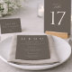 The soft taupe background paired with delicate ivory lettering creates a calm and elegant look that blends beautifully with neutral wedding décor, linen table settings, candles, and floral arrangements.