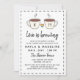 Invitación a la fiesta de compromiso de una encantadora pareja LGBT con dos tazas de café con un corazón de orgullo arcoíris en el medio. Agrega tus iniciales a las tazas. El amor está en el aire en una encantadora letra a mano. Agrega el texto de la invitación y la información en una fuente clara, en negro sobre un fondo blanco.