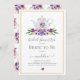Encantador salón de té con flores para un té con ducha de novia con la novia como invitación a la ducha de novia. La olla de té tiene acentos dorados y hermosas flores pintadas sobre ella. La asombrosa caligrafía de escritura añade al aspecto. Un diseño maravilloso para tu té nupcial. Vea la coordinación de artículos en nuestra tienda, Enchanted Finch.