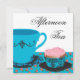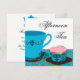 Invitaciones elegantes de té de la tarde con rosas azules y rosadas.