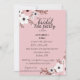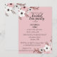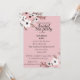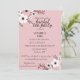 Esta imagen muestra una invitación a una fiesta de té de boda con fondo rosa y diseño floral. La invitación es para una fiesta de té de boda en honor a Annabella Ford. El evento está programado para el 10 de julio a las dos de la tarde en The Pavillion Restaurant, ubicado en 2385 Asteron Street, Jackson, MI.