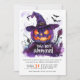 ¡Prepárate para ser invitado al evento más espantoso del año con nuestra invitación de la fiesta de Halloween! Este diseño presenta un ilustracion acuarela de murciélagos inquietantes y una calabaza siniestra sobre el gorra de una bruja, que fija perfectamente el escenario de nuestra fiesta anual de Halloween. La mezcla de tonos brujos y detalles espeluznantes crea una atmósfera llena de travesuras y magia. Tanto si estás encantado con las brujas como si simplemente disfrutas de la emoción de Halloween, esta invitación es la manera ideal de reunir a tus amigos y familia para una noche de pasmosa diversión.