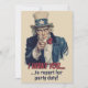 Figura clásica del Tío Sam de reclutamiento vintage sobre invitación divertida para fiesta.