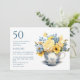 Invitación Teacup Flores azules amarillas 50 cumpleaños