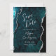 Invitación Teal Agate Plata Escritura Nupcial Guardar la Fech